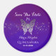 Moderna, elegante, única, purpurina mariposa de plata falsa en combinación con adorable color azul real morado. Moda, caprichosa, intemporal Quinceanera ahorra el imán de la invitación a la fecha.