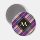 Diseño morado, amarillo dorado y azul tartán. Patrón sin foco. Monograma personalizado.