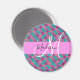 El nombre del monograma y el imán inicial del purpurina de la sirena, de color crujiente y morado glam, lila, aqua, turquesa y verde. Su nombre personalizado y su monograma están escritos en un guión elegante con letras a mano con un fondo rosado. ¡Un regalo perfecto de cumpleaños o Navidades!