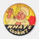 ¿Qué es Cookin? Retro imán frigorífico a la antigua. Feliz cocina del chef con esa frase retro de los años 40. Es decir, "¿qué pasa?", "¿qué pasa?" Magnate de cocina amarillo, rojo y negro para acentuar tu cocina.