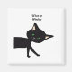 Imán ¡Qué Muñecas! Gracioso gato negro con ojos verdes