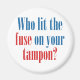 ¡Una manera humorística de preguntar a una mujer si es premenstrual! Por supuesto, todavía no es políticamente correcto, ¡pero podrías hacerla reír primero! Dice "¿Quién encendió la mecha en tu tampón?"