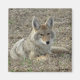 Imán de Coyote Acostado. Un joven coyote se relaja después de una mañana persiguiendo ratones en las praderas de hierba corta del sur de Alberta.