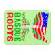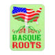 Mapa de EEUU con banderas del País Vasco y Americano mezclado con el texto Raíces vascas en rojo y verde.