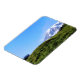 Una vista del monte Rainier y las verdes colinas circundantes en un soleado día de primavera.