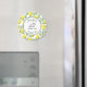 Un imán de agradecimiento para una taza de té de boda u otro evento. Diseñado con ramas de limones amarillos y hojas verdes, en un patrón repetitivo. En el centro hay un círculo con un borde de cuerda superpuesto y dentro hay una taza de té y una tetera. Personalice para su evento.