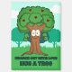 Sucurre con amor y abraza un imán de árbol, que presenta una escena inspirada en la naturaleza de un árbol divertido y feliz con grandes ojos tontos y una amplia sonrisa amistosa. El tronco del árbol es marrón y las hojas son verdes salpicadas de manzanas con forma de corazón rojo. Debajo hay dos plantillas de texto en un tipo de letra verde chunco y divertido con un trazo negro. Una que lee "Rama con amor" y la otra que dice "Abrazo un árbol". Estas pueden ser usadas como son o puedes usar las plantillas de texto para agregar tu propio texto. El fondo es una escena natural sencilla con árboles, hierba y nubes. Ideal para los amantes de los árboles, los amantes de la naturaleza y el amor por el entorno.