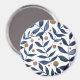 Ramas acuáticas y bayas con motivos índigo y beige. Ilustracion botánico sobre imanes.