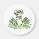 Aquí hay una rana amigable, sacándole la lengua, sentada en una almohadilla de lirio. Este diseño personalizado fue creado con acuarela, lápiz de color y tinta.