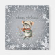 Un lindo ratón gris vestido para el invierno con una gorra llena y una bufanda sostiene bayas y les desea "Felices Fiestas". Está rodeado por un diseño blanco de copos de nieve. El saludo se puede cambiar fácilmente a lo que prefieras.