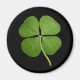 Verdadero trébol de cuatro hojas shamrock imán negro. El color de fondo se puede personalizar.