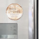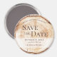Comparte tus noticias especiales con un toque rústico con este imán de "Save the Date" de boda en rebanada de madera, diseñado para asemejarse a un corte natural de anillo de árbol. Tonos cálidos y orgánicos combinados con un diseño limpio crean un equilibrio perfecto entre el encanto inspirado en la naturaleza y la simplicidad moderna. Un sutil overlay blanco asegura que tus nombres, fecha y ubicación permanezcan claros y fáciles de leer mientras muestra el hermoso diseño de textura de madera.