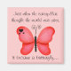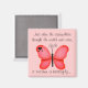 Hermosa cita motivacional de mariposa en rojo en un imán. "Justo cuando la oruga pensó que el mundo había terminado, se convirtió en una mariposa".