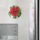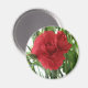 Este imán hermoso cuenta con una fotografía detallada de una impresionante flor de clavel roja. La fotografía fue tomada usando macrofotografía para mostrar la belleza de esta flor roja brillante rodeada de vegetación.