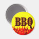 BBQ diciendo en un tipo de letra occidental para cocineros y cocineros con arte gráfico de llamas rojas y naranjas al final del diseño. Haga clic en Personalizar para agregar su nombre o mensaje.