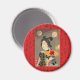 Magnet con Geisha sobre escritura asiática con antecedentes rojos.