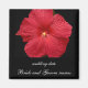 Una foto digital de primer plano de un hibisco rojo exótico. El texto del personalizable incluye un lugar para el nombre de la pareja feliz y la fecha de boda. ¡No te olvides de los accesorios!
