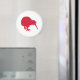 Una silueta de un kiwi con un pájaro rojo, uno de los colores de la bandera neozelandesa.