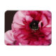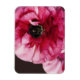 Una pintura digital de flores rojas Ranunculus sobre un fondo marrón chocolate.