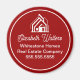 These professional realtor magnets are custom made with your real estate company name under the modern white cursive script and house image. These bright red realty business promotional item labels feature a house logo image for home builder or realty agent company marketing.