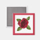 Este diseño de rosa fue inspirado por una madre que trataba de hacer que su hija se quitara el tejido. En memoria del intento de esa madre se hace este imán cuadrado de rosa rojo y otros productos con este diseño.