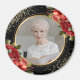 Elegant black and gold floral photo magnet featuring red roses and gold confetti.