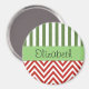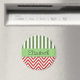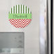 Imán Red Zigzag, Chevron, Green Stripes, Tu Nombre
