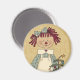 Traer la alegría de los Navidades a sus seres queridos con este imán de temática rural. Cuenta con una Annie primitiva de pie con un sencillo árbol de Navidad de campo.