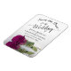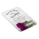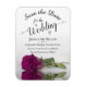 Estos imanes hermosos son una excelente manera de hacer saber a sus amigos y familiares que ahorran la fecha para su próximo boda. Presentan un diseño elegante con caligrafía de escritura de encaje y una foto de un solo magenta, rosa morado de cassis o color berry que refleja en un estanque con olas y ondas.