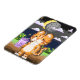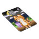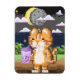 imán personalizado con gato naranja bebiendo té boba durante un eclipse con OVNI en el fondo.