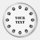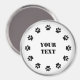 Black and White Paws es un diseño de arte gráfico. Un imán blanco redondo con un borde plateado. Pequeñas huellas de pata negra bordean los bordes exteriores. Hay un área de texto en el centro con el que puede personalizar. Puedes editar el texto para decir lo que quieras. También puede borrar el texto si lo prefiere.