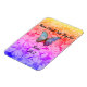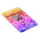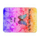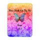 Un imán de humor con un verso adicional de la Biblia, margaritas de color grooví al fondo y mi pintura de una mariposa.