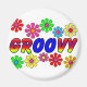La energía de las flores de sangre de los años 70 diseña "Groovy" en camisetas, tazas, cadenas de llaves, gorras, delantales, bolsas de tote, franqueo, botones....flores brillantes