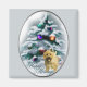 Exquisito arte navideño con un adorable cairn terrier parado frente a un árbol de Navidad lleno de nieve, decorado con adornos que parecen brillar a la luz de la luna. Maravillosos regalos para los amantes del cairn terrier.
