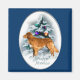 Navidades del New Scotia Duck Tolling Retriever con un impresionante toler de patos frente a un árbol de bosques decorados. Hermosa impresión de una variedad de artículos de regalo de vacaciones.
