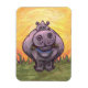 Exposición de animales Cute Hippopótamo Fotos Magnet creado por Imagine That! El diseño es para el lado divertido de usted, presentando nuestro arte original de un lindo personaje de hipopótamo parado en la hierba de la sabana con un cielo amarillo texturado, naranja y una divertida frontera violeta pintada por el talentoso ilustrador para niños, Traci Van Wagoner. Este lindo caballo de agua hace un gran regalo para cualquiera que ame hipopótamos, animales africanos, animales de safari, hipopótamos africanos, caballos de agua y divertidos arte animal.