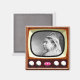 En realidad no tenían televisión cuando la Reina Victoria estaba. Pero al menos ella es lo suficientemente mayor como para estar fuera de los derechos de autor. Me atrevo a decir que probablemente pensaría que era una manera genial de aparecer en un imán, haciendo un cambio con respecto a las viejas monedas, sellos y medallas usuales. :)