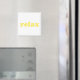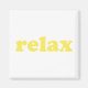 Relájate la tipografía moderna amarilla, divertido imán fresco. Texto amarillo sobre fondo blanco.