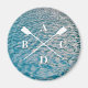 Un imán inteligente para un remero entusiasta, esto tiene espacio para que usted introduzca cuatro iniciales (o una palabra corta). El diseño muestra los remos cruzados con un doble círculo blanco "cosido" alrededor de ellos, sobre un fondo acuoso.