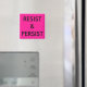 Añada un mensaje de activismo político a su refrigerador, casillero y archivadores con imanes personalizados que digan: "Resist & Persist" en negrita y negro sobre fondo rosado caliente. Para obtener un color de fondo diferente, haga clic en "Personalizar" y seleccione un color de fondo en la barra lateral. Haga clic en "Done" y luego en "Add to cart" para comprar su imán personalizado. Para ver el diseño Resist & Persist en otros elementos, haga clic en el enlace de la colección de Artes Rocklawn debajo.