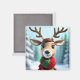 Escena de invierno con un lindo reno vistiendo una bufanda.