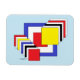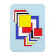 Esta obra de arte geométrica abstracta de Richard H. Fay presenta un conjunto de cuadrados en los colores primarios del rojo, el azul y el amarillo, así como el negro y el blanco.