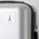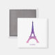 Este diseño presenta una Torre Eiffel abstracta de color púrpura y rosa.