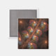 Arte fractal colorido y único, abstracto, loco y brillante. Una imagen psicodélica multicolor con marrón y naranja. Diseño para su imán cuadrado decorativo inusual y más.
