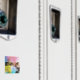 - Resumen de arte pop retro, Square Magnet. Mirando los ojos con salpicaduras únicas de pintura, desde el marrón hasta el azul, el amarillo y el rosa. - Dibujo digital original de Raphael Studio - 'Stare'. - Diseño elegante, artístico y único