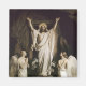 Jesús, con los brazos extendidos, se para delante de la tumba abierta. Los ángeles adoran a ambos lados. Carl Bloch