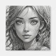 Chica de anime lindo con ojos grandes, dibujo de retratos en blanco y negro.