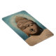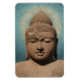 Retrato de la estatua de un Buda sobre un fondo azul "deslumbrado".