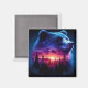 Imán Retrato Del oso De Doble Exposición Con Atardecer