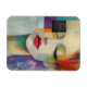 Este impresionante retrato abstracto de una mujer combina el surrealismo con técnicas vibrantes de bloques de color. Su expresión serena, sus ojos cerrados y sus labios rojos audaces están enmarcados por una mezcla de formas geométricas y texturas de pátero. Un diseño moderno y vanguardista que añade un toque de elegancia moderna.